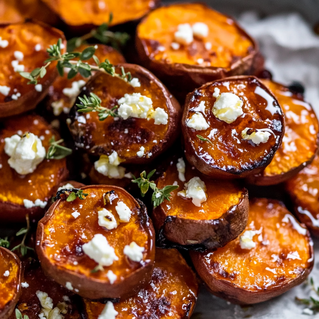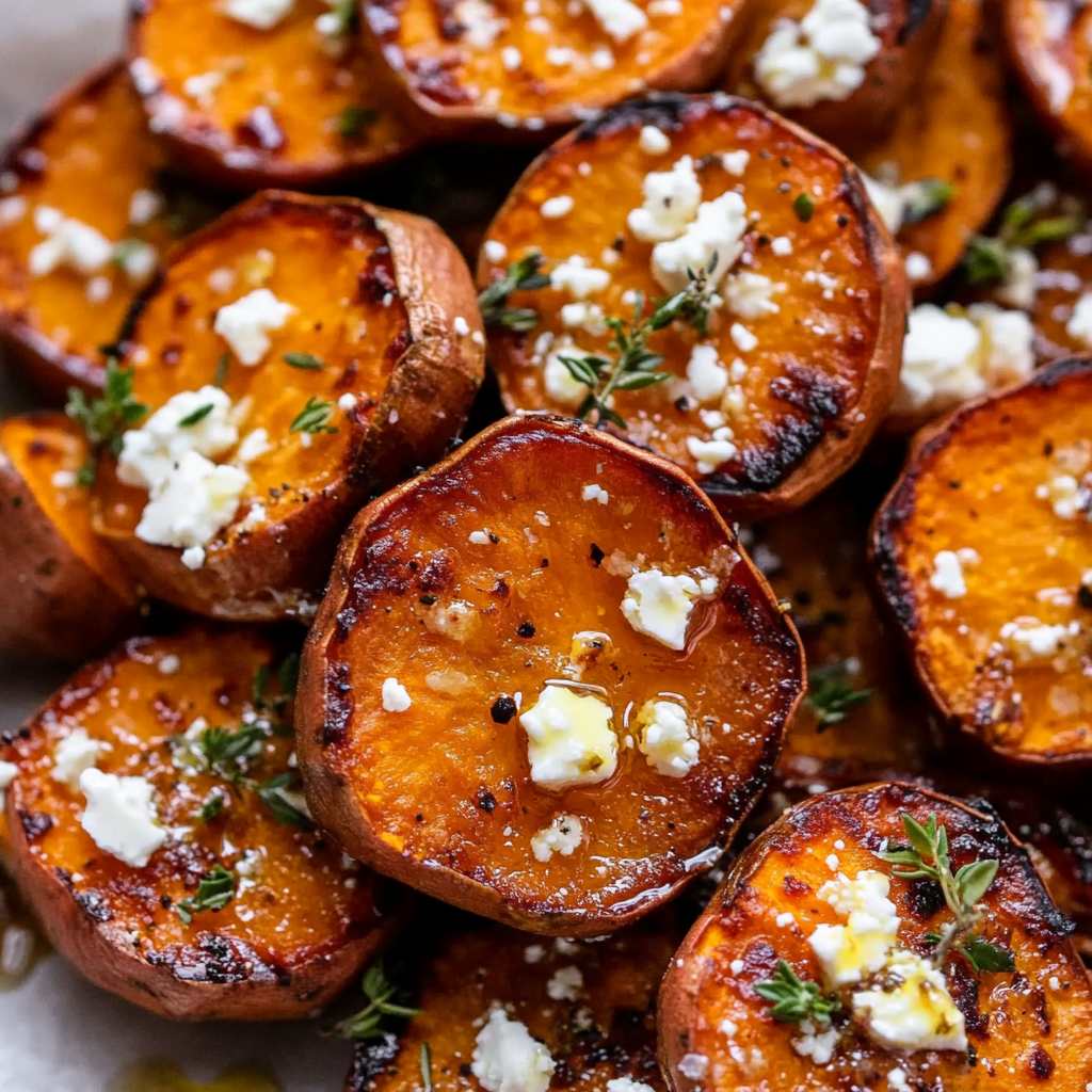 Roasted Sweet Potato Rounds with Honey & Feta